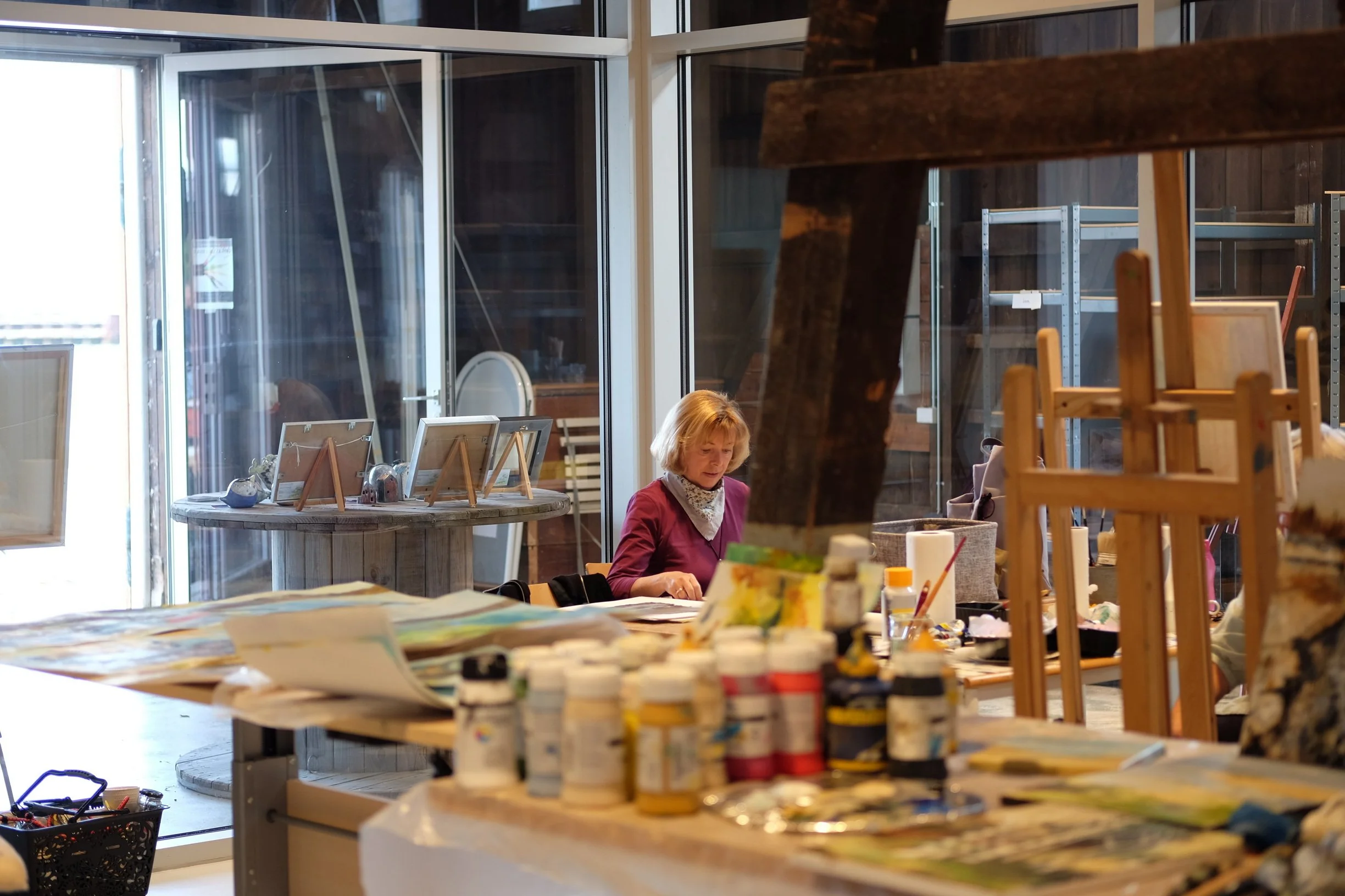 “Bygningen er renoveret med øje for dens arkitektoniske kvaliteter, det store åbne rum med højt til loftet. Her er åbent til kip og intet skjules. Bygningens råhed i konstruktion, funktion og rum går op i en højere enhed. Mange rigtige valg er taget ved den aktuelle renovering, bl.a. at den byggetekniske kontekst ikke forandres og således fremstår bygningens ydervægge stadig som en enkle træbeklædning uden isolering. Kunstnerværkstederne er etableret i en stor isoleret glasboks i rummets midte. Her kan man arbejde som kunstner og kunsthåndværker med moderne ovne og øvrigt udstyr. Og herfra trækkes udluftning og andet teknisk udstyr fint ud over tag, uden at forstyrre det samlede arkitektoniske udtryk.